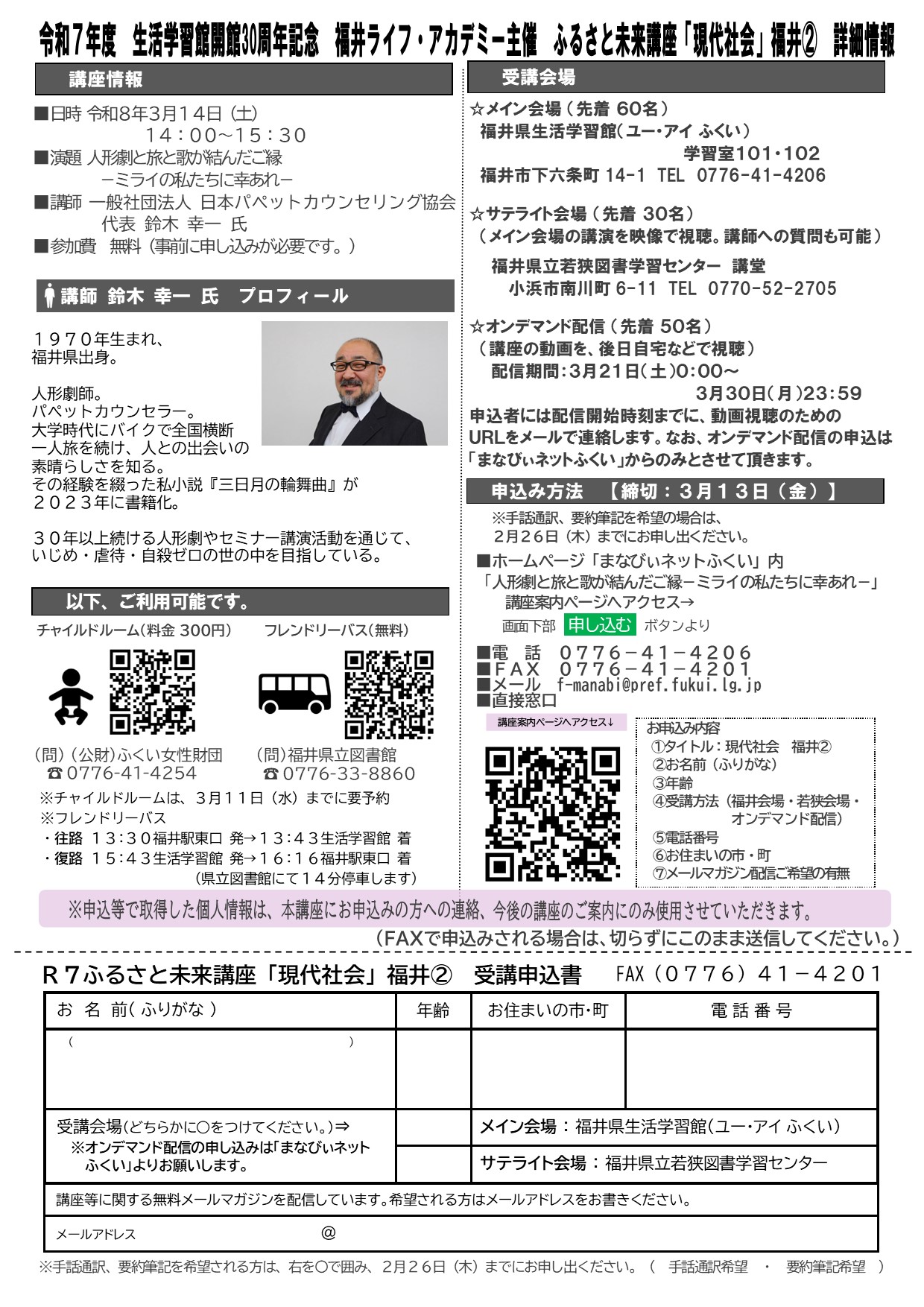 ※手話通訳、要約筆記(メイン会場・サテライト会場のみ)をご希望の場合は、2月26日(木)までにお申し出ください。