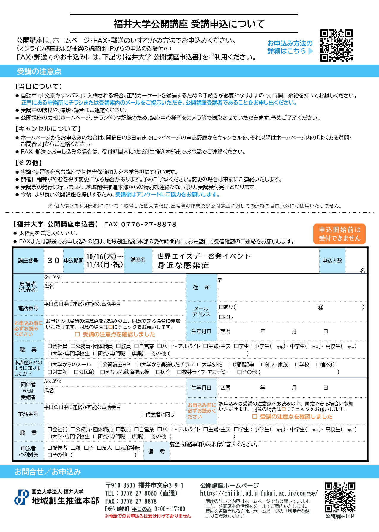・ホームページ、FAX、郵送・申込期間:10月16日(木)~11月3日(月・祝)まで