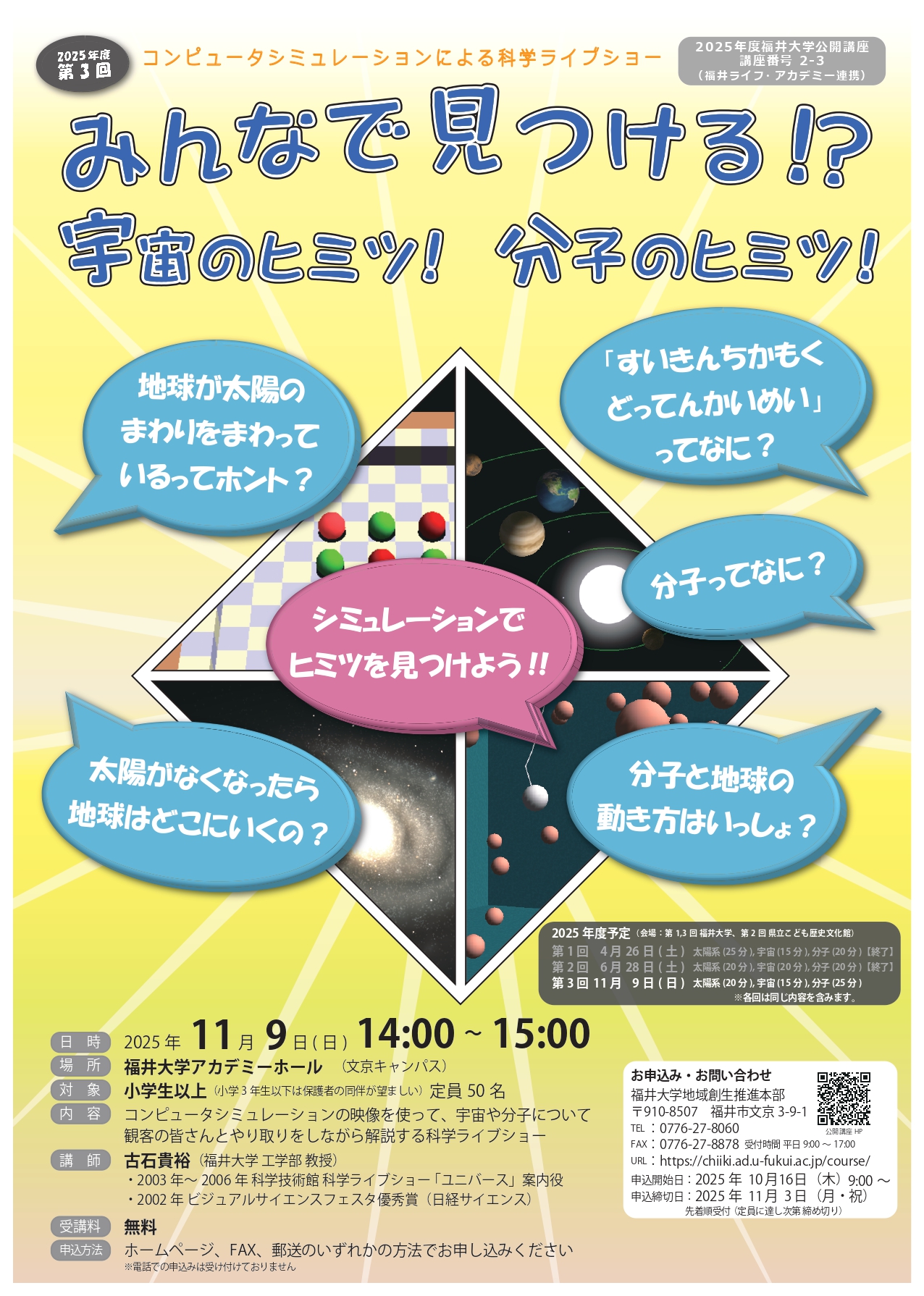 福井大学公開講座「第3回みんなで見つける!?宇宙のヒミツ!分子のヒミツ!」