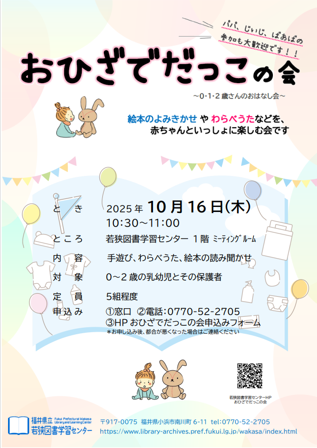 - 申込フォーム →【10月16日】おひざでだっこの会申込フォームにてお申し込みください。