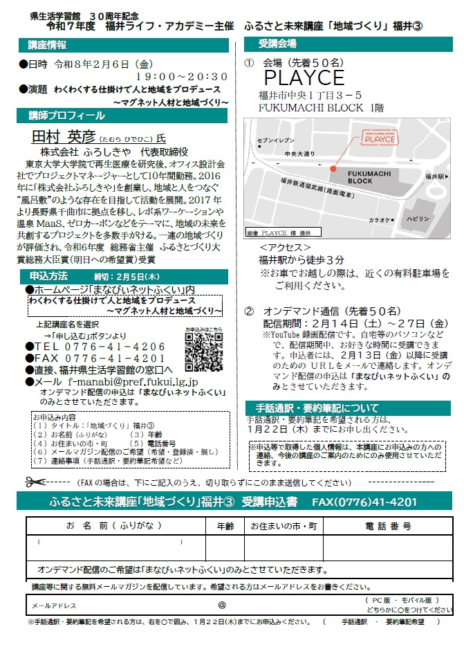受講のご案内メールのアドレス → f-manabi@pref.fukui.lg.jp