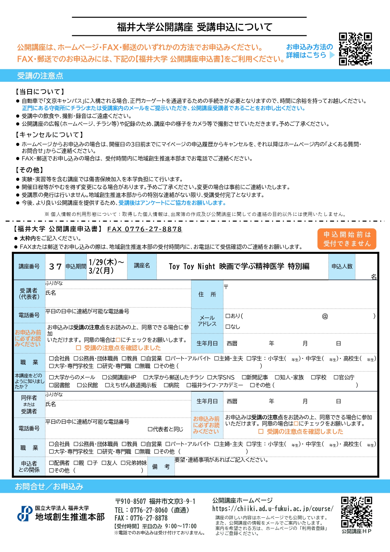 福井大学公開講座 「Toy Toy Night -映画で学ぶ精神医学 特別編-」