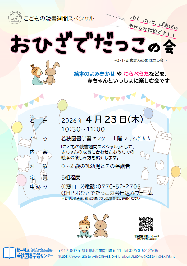 - 申込フォーム →▶【4月23日】おひざでだっこの会申込フォームにてお申し込みください。